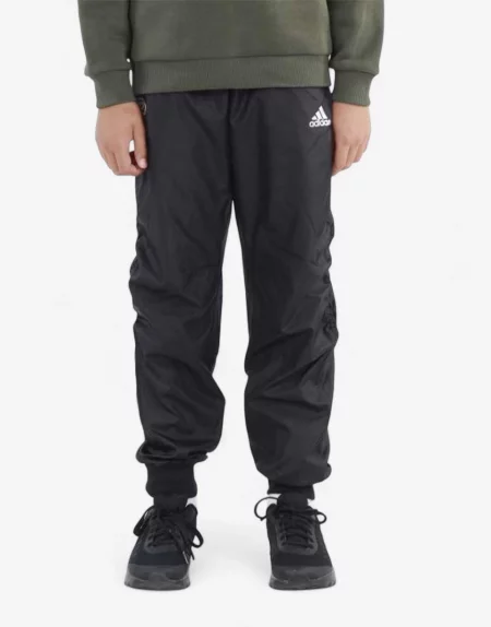 Детско спортно долнище Adidas в черен цвят, изработено от висококачествена материя със стандартна кройка. С еластична талия с връзки, странични джобов