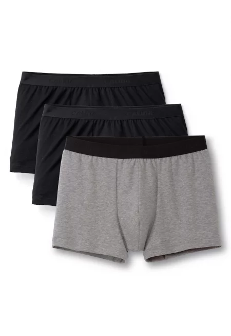 Характеристики Тип продукт: боксерки Цвят: черен - сив - бял Принт: без принт - лого Материал: памук - еластан Талия: средновисока Детайли: лого на талията Състав Външна част: памук - еластан