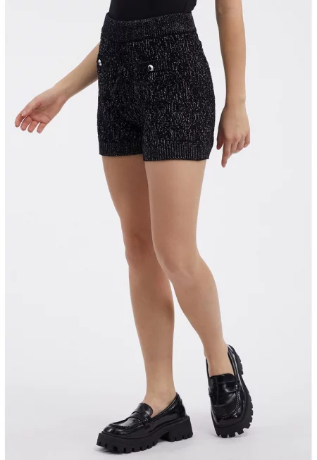 Къс плетен панталон с бляскави нишки