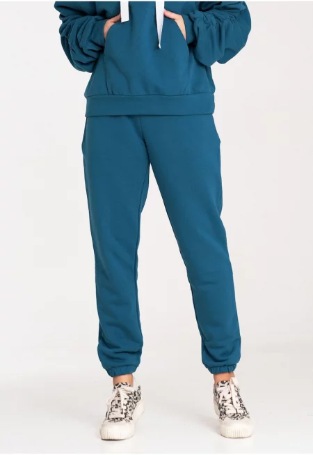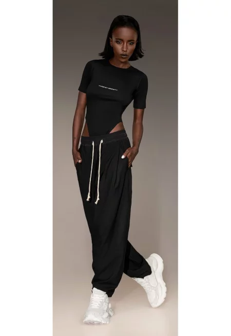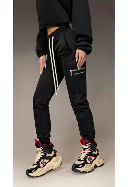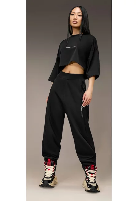 Широк спортен панталон Nicole с цепки на маншетите с капси