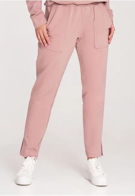 Дамски панталон - M1035 - тъмно розов - памук/еластан