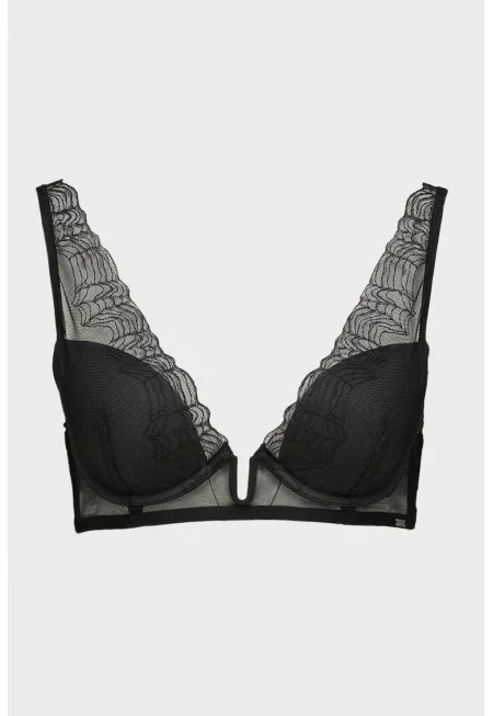 Дантелен сутиен с реулируеми презрамки и подплънки - Черен -