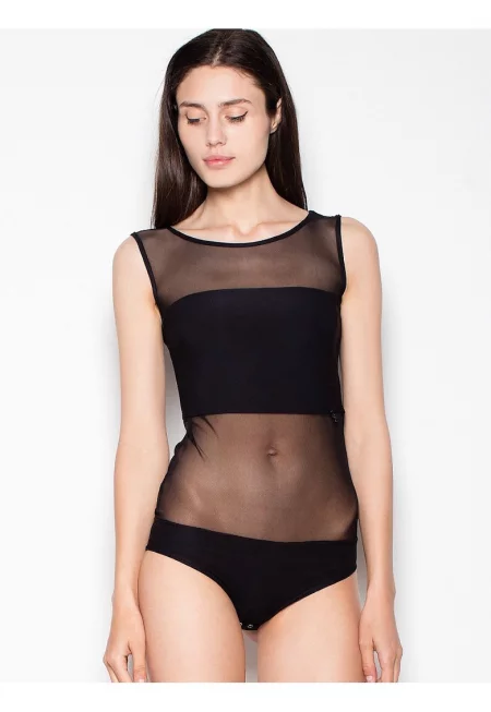 Боди прозрачно - полукръгло деколте - черно - полиестер -