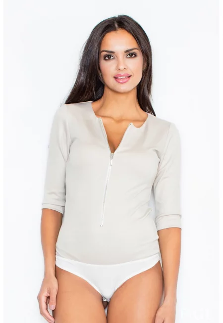 Дамско боди - Полиестер/Вискоза/Еластан - С Цип - Бежов -