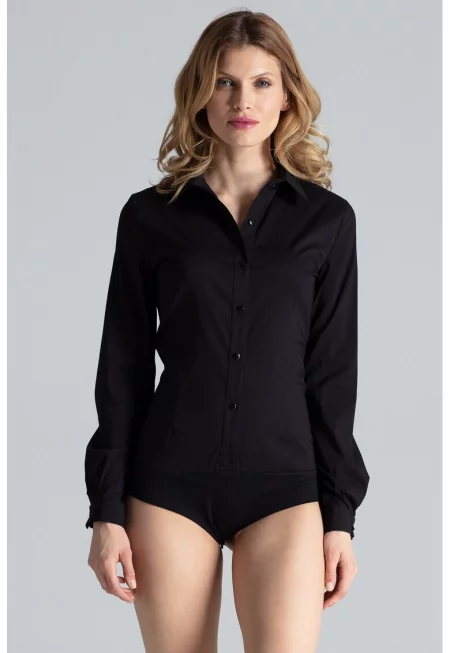Боди дамско - черно - памук - стандартна кройка - с яка