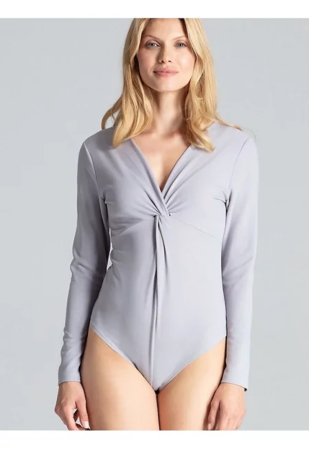 Сиво боди дълги ръкави - декоративни детайли - полиестер -