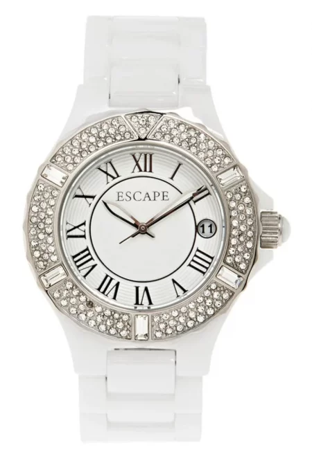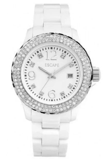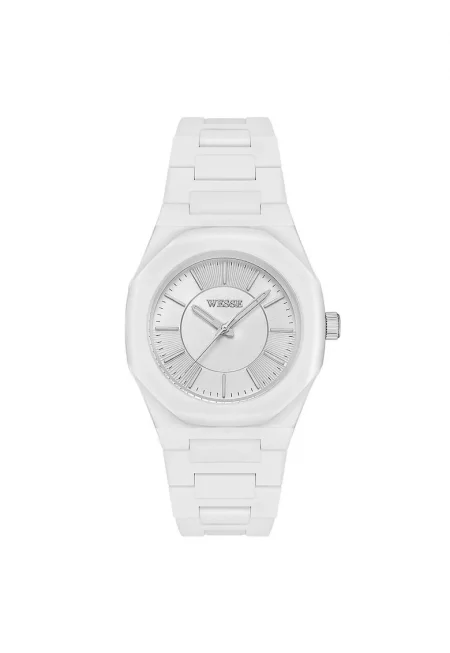 Дамски часовник 36 мм - керамичен - бял - водоустойчив 5 ATM