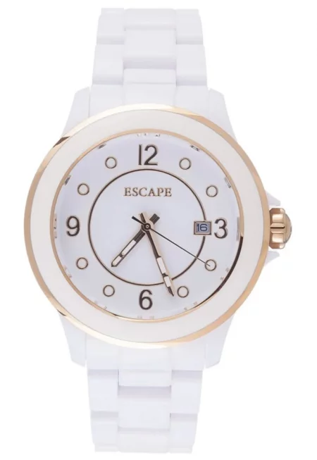 Дамски часовник - пластмаса - 40 мм - 5 ATM - бял/златист