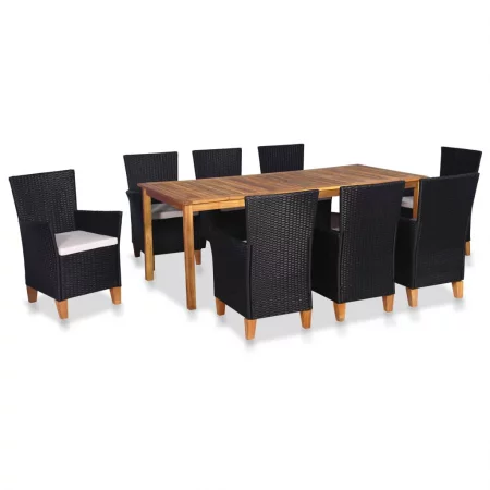 Sonata Градински трапезен комплект, 9 части, черен