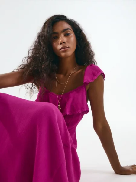 Mohito - Макси рокля с буфан ръкави - кремaво