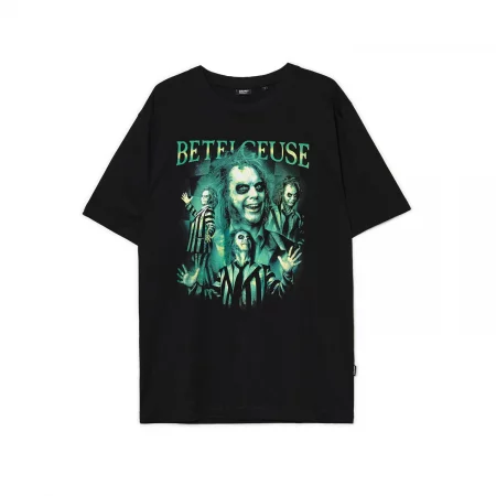 Cropp - Черна тениска с принт Beetlejuice - черeн