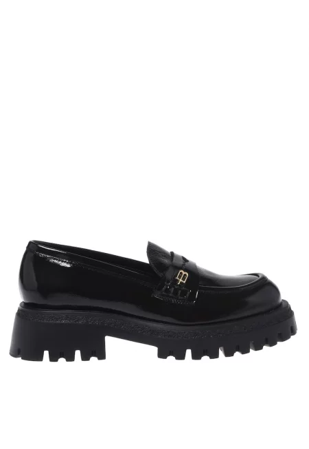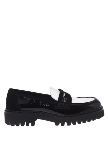 Лачени кожени мокасини с масивен ток