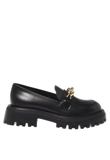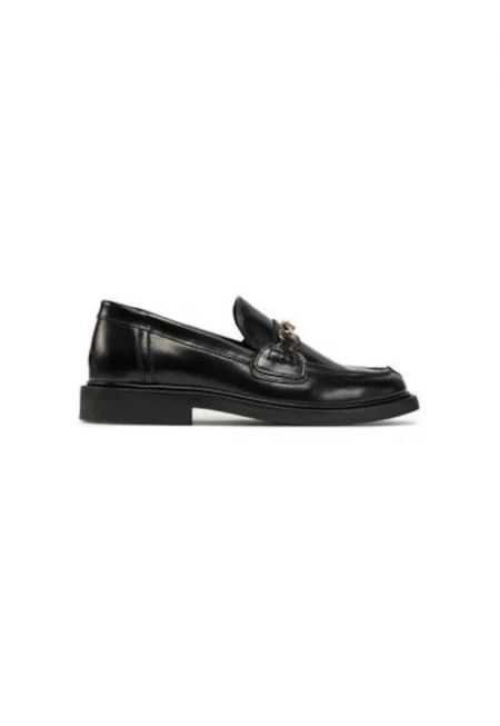 Кожени мокасини с квадратен връх и верижка