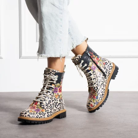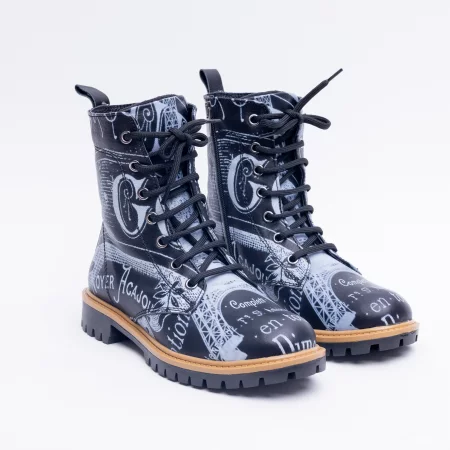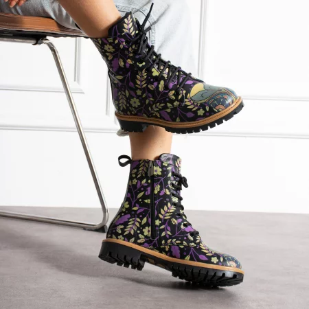 Дамски черни кубинки от естествена кожа с цип и връзки