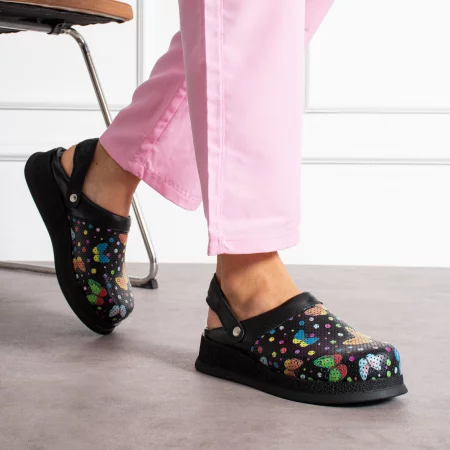 Черно медицинско сабо от естествена кожа с каишка