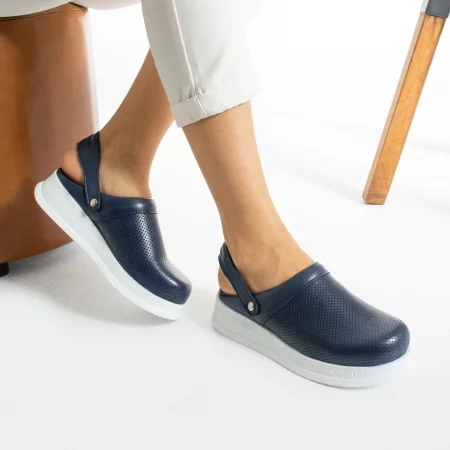 Синьо анатомично работно сабо от естествена кожа