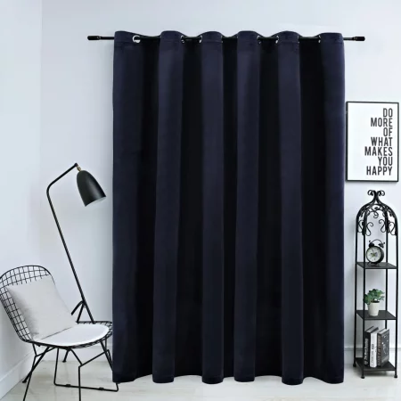 Sonata Затъмняваща завеса с куки, кадифе, тъмносиньо, 290x245 см