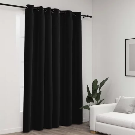 Sonata Затъмняваща завеса с метални халки, кадифе, черна, 290x245 см