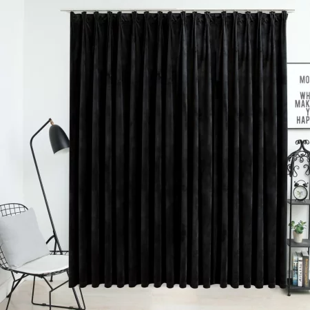 Sonata Затъмняваща завеса с куки, кадифе, черна, 290x245 см