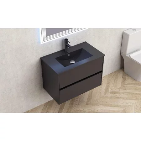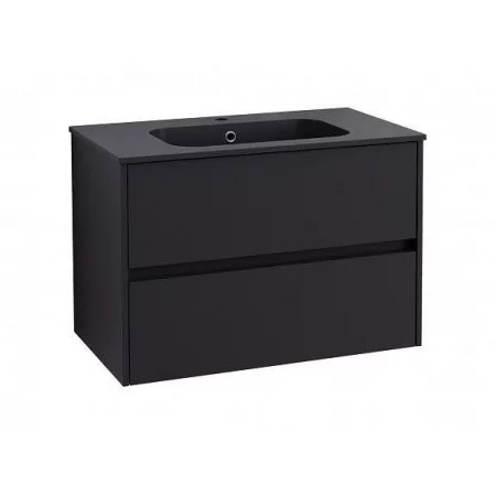 TESI долен шкаф+мивка 80 cm, с две чекмеджета, черен мат
