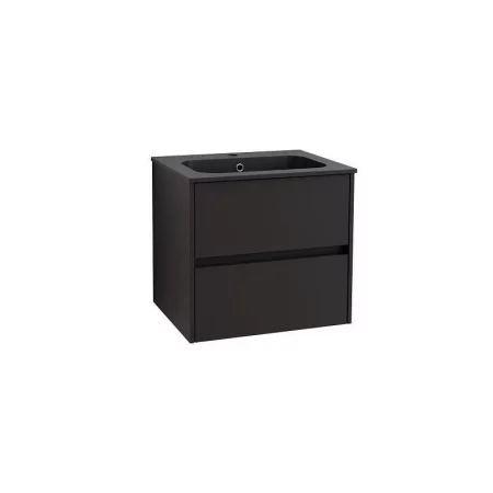 TESI долен шкаф+мивка 60 cm, с две чекмеджета, черен мат