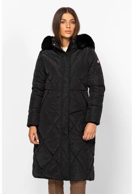 Дамско палто - 304991233 - Полиестер/Рейон - Черно