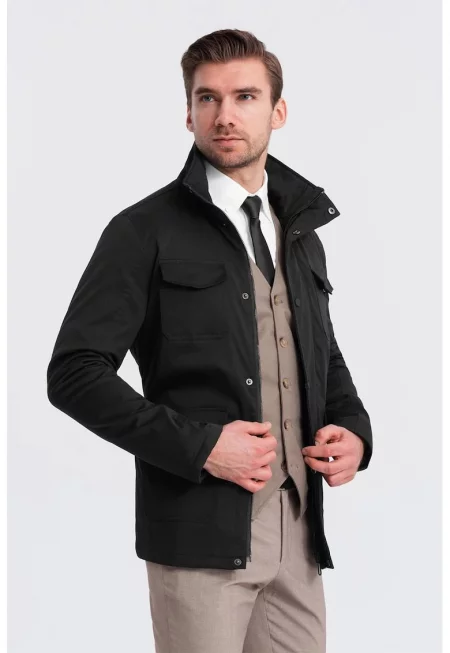 Мъжко яке - 304020384 - Вискоза/Полиестер - Черно