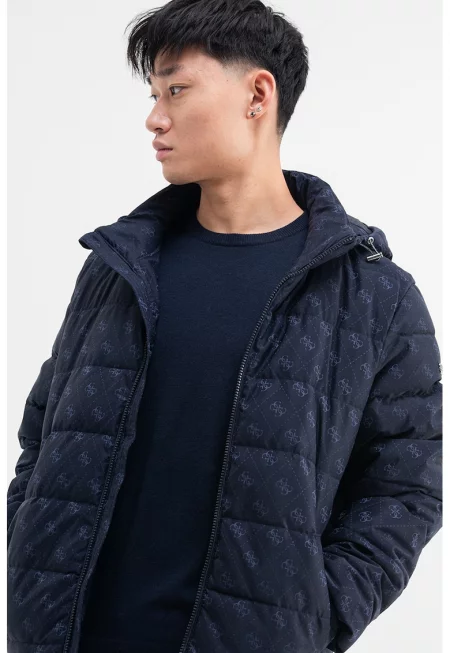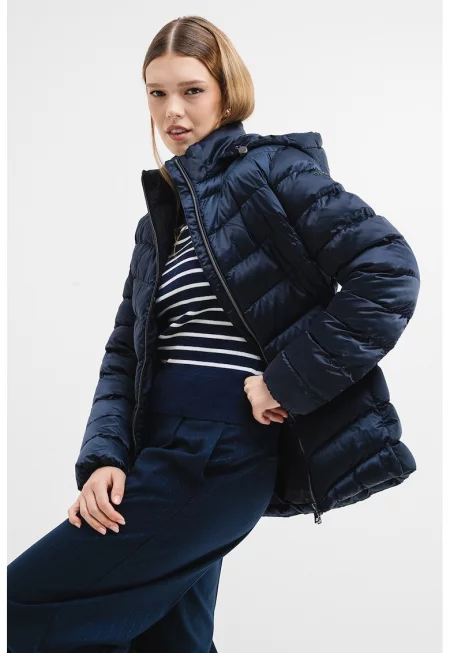 Капитонирано зимно яке с качулка - Тъмносин -