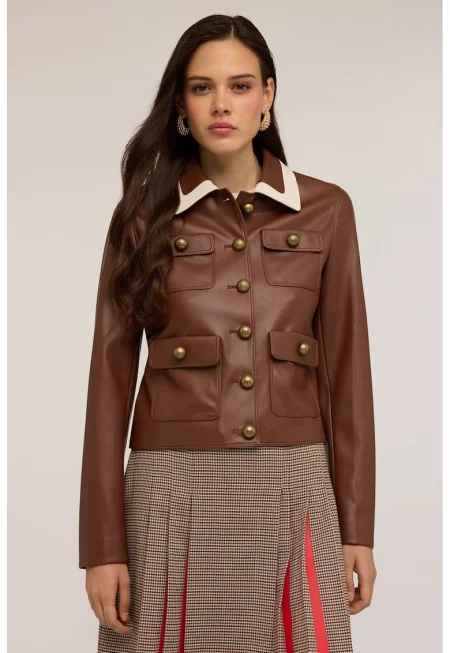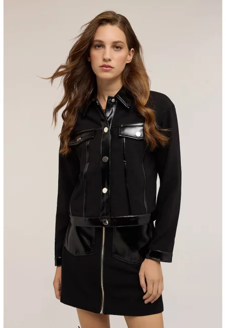 Яке от еко кожа с раздвоен ревер