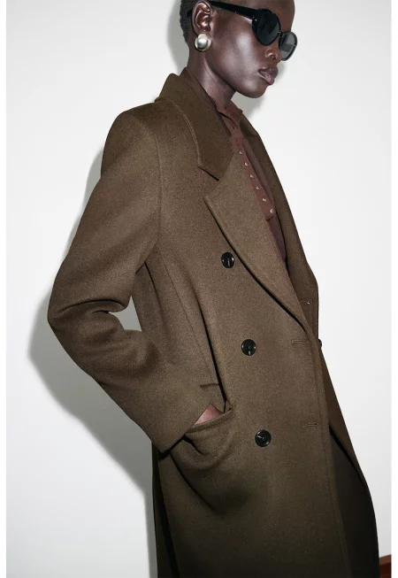 Вълнено палто с двуредно закопчаване