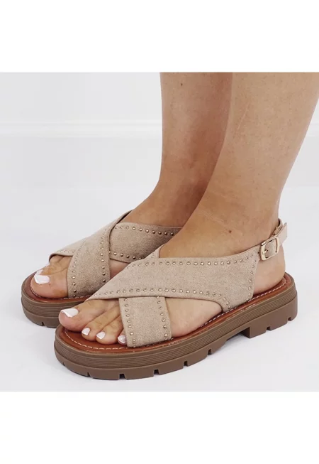 Бежови широки сандали с дебела подметка 8067 129 14962
