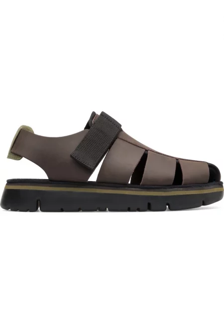 Кемпер - Кожени сандали Oruga с велкро и равна платформа