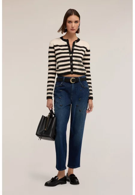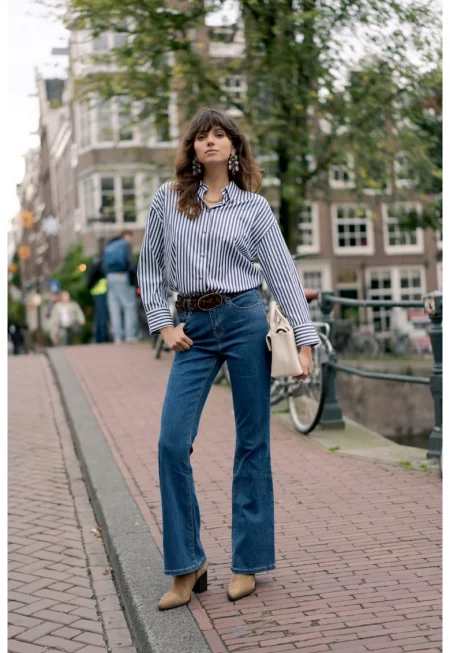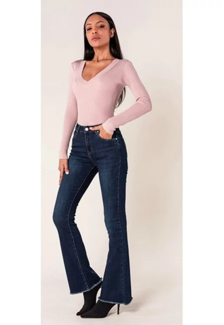 Дамски разкроени дънки тип лодка тъмносини P218-5A M10 17029