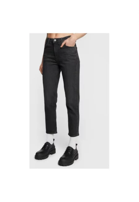 Дънки със средновисока талия - Черен меланж