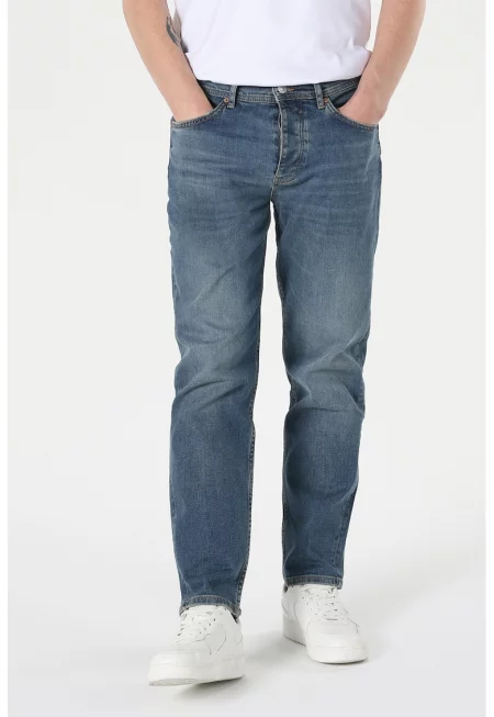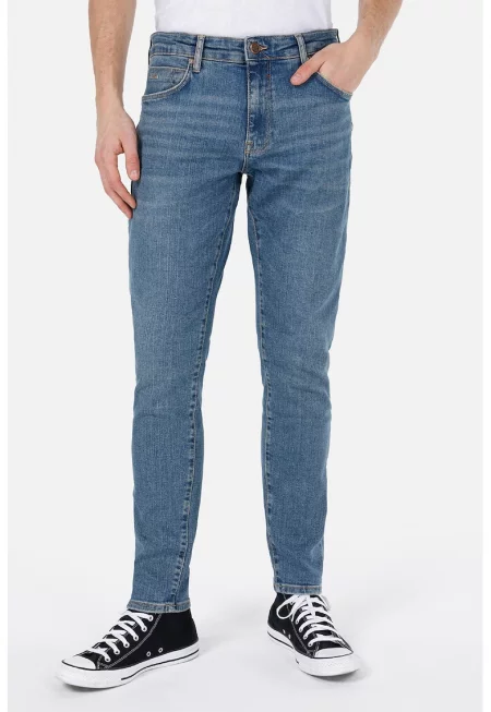Дънки със средна талия и 5 джоба - Син