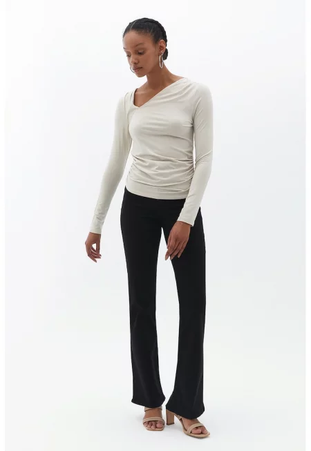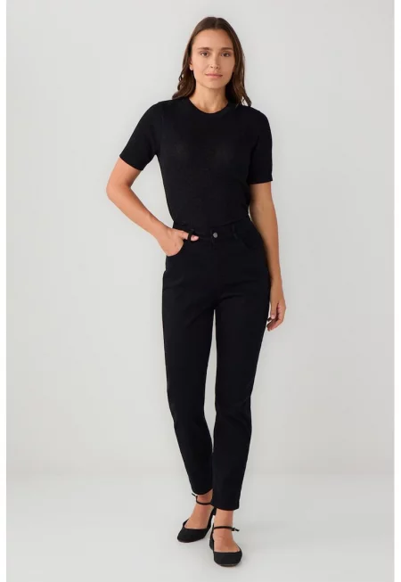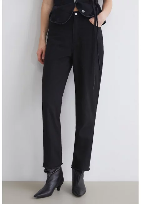 Дамски разкроени дънки тип „лодка“ черни P218-8A M10 17985