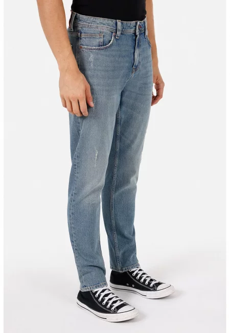 Слим дънки със захабен ефект - Светлосин