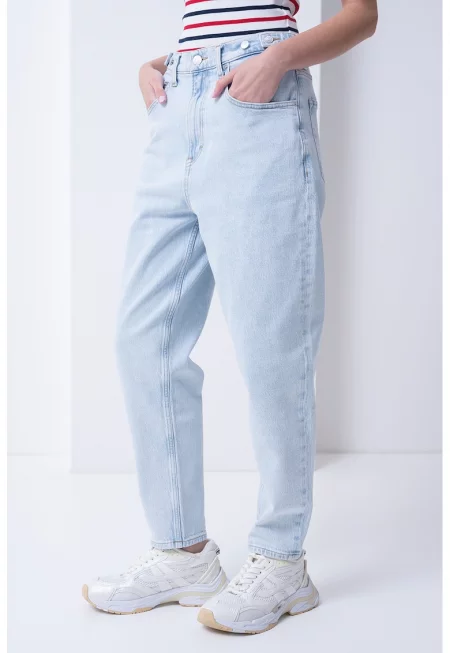 Дънки Mom-Fit над глезена със захабен ефект - Лавандула