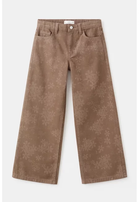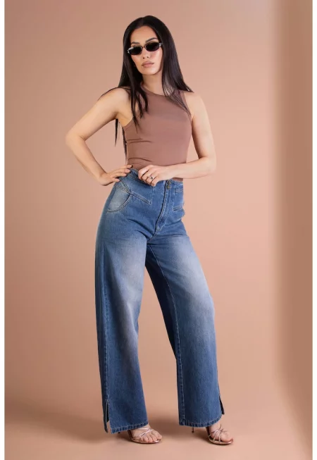 Дънки с широк крачол с висока талия и цепки встрани - Син -