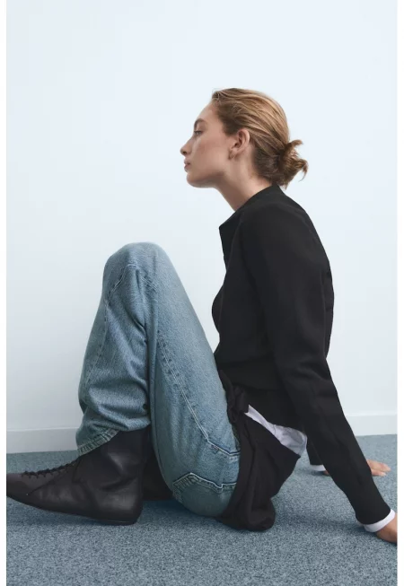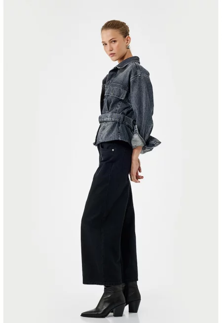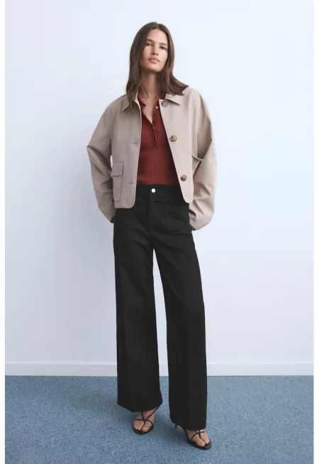 Разкроени памучни дънки с миди талия