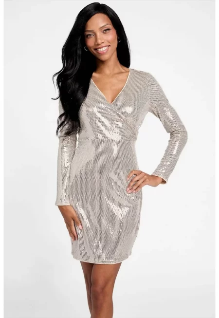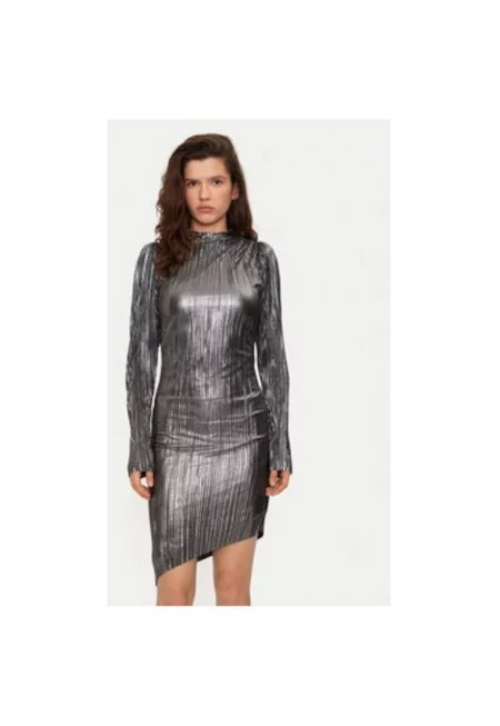 Дамска рокля - 304453625 - Полиестер - Сребрист