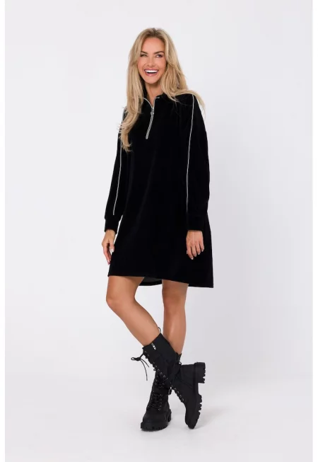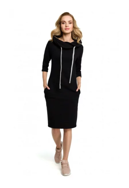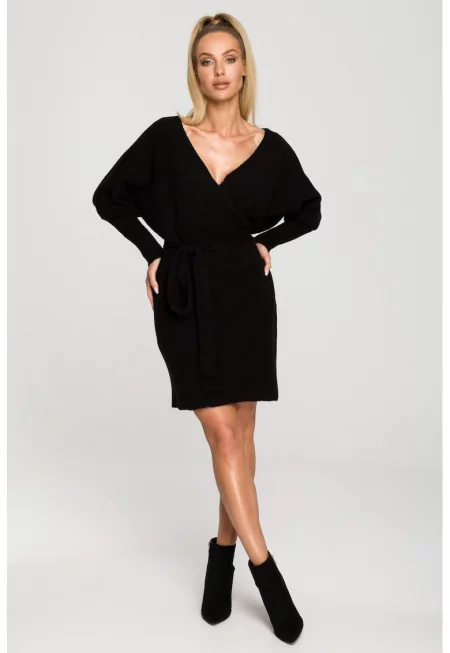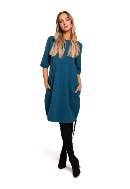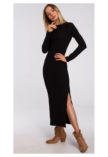 Дамска дълга плетена рокля - тъмносиня (bleумарин) - от вискоза