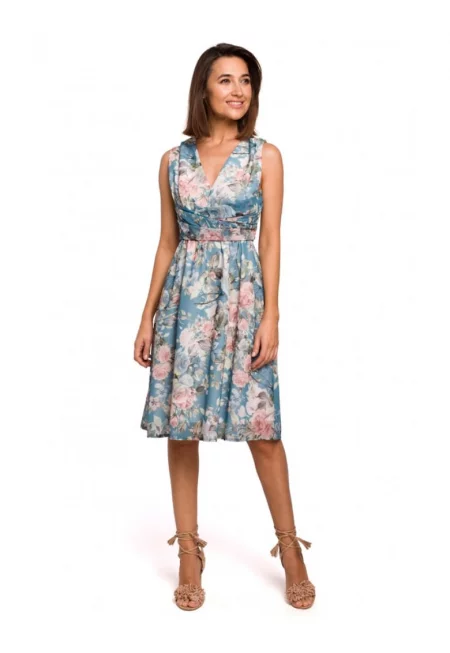 Миди рокля с необработен зелен флорален принт ASD92383 M10 17127