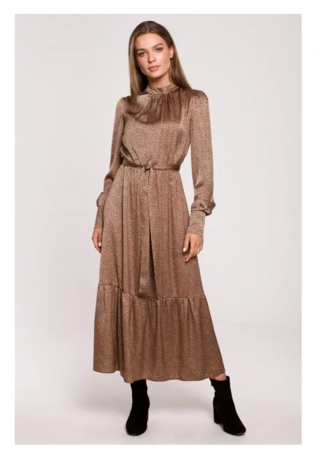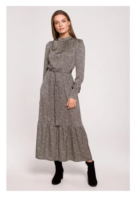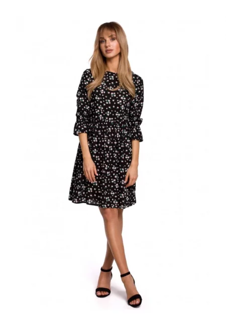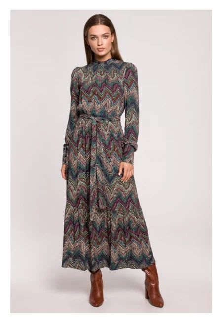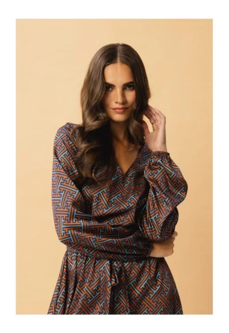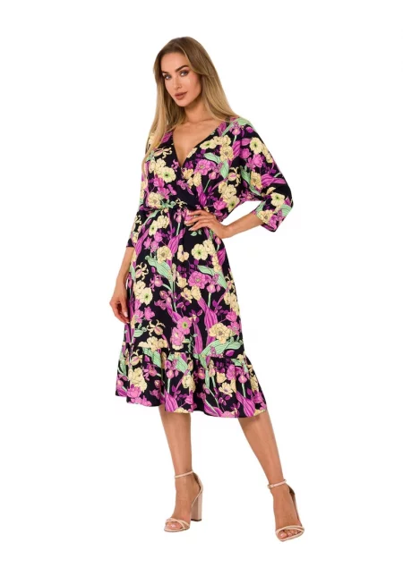 Дамска рокля от вискоза - бордо с бяло и флорален принт
