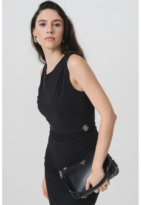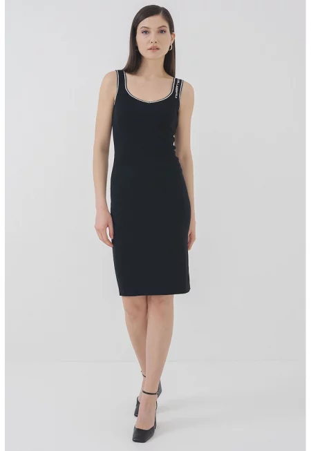 Вталена рокля с модал с метално лого - Черен
