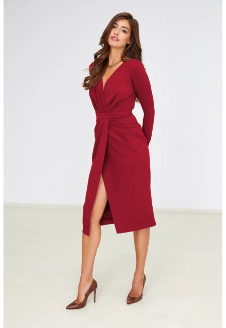 Застъпена рокля - Аленочервен