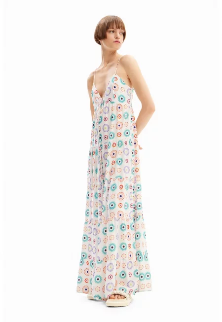 Дълга рокля с принт - Слонова кост/Виолетов/Тюркоаз