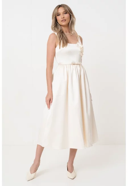 Миди рокля Rosie с рюш - Бял