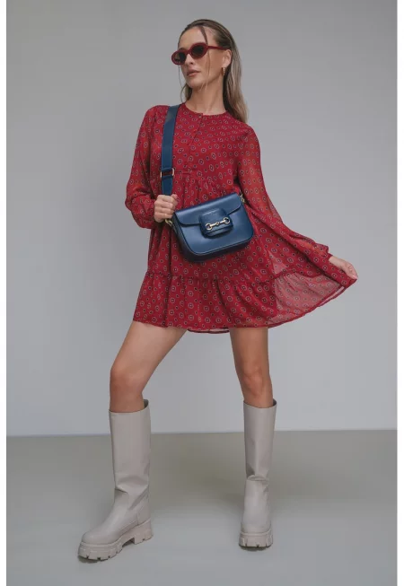 Мини рокля с дълбоко деколте - Рубинено червен