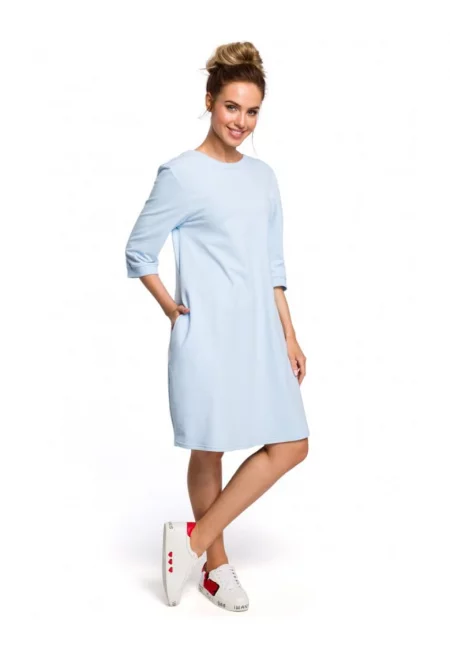 Дамска рокля - Памук/Еластан - - Светлосин